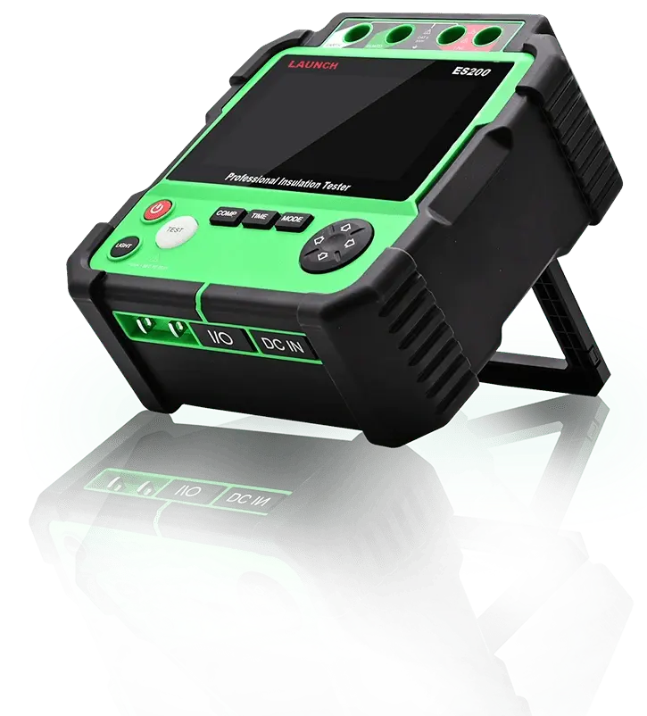 The ES200 insulation tester is equipped with advanced measurement and data processing software that enables it to perform complete measurements of insulation resistance, voltage and other parameters in hybrid vehicles. Its reliable performance and user-friendly handling make it ideal for on-site measurements and maintenance of vehicles with high-voltage batteries and power supply lines. This is particularly important after repairs to vehicles with high-voltage technology, as manufacturer requirements often stipulate a final insulation test.